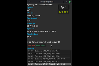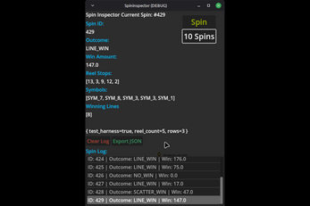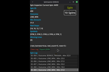 Spin Inspector is a standalone Godot 4.5 developer tool designed to help you inspect, debug, and verify spin results in any reel-based or slot-style game. Whether you’re building a casual match-and-spin game or a full-blown multi-reel engine, Spin Inspector gives you real-time visibility into exactly what your game is producing.